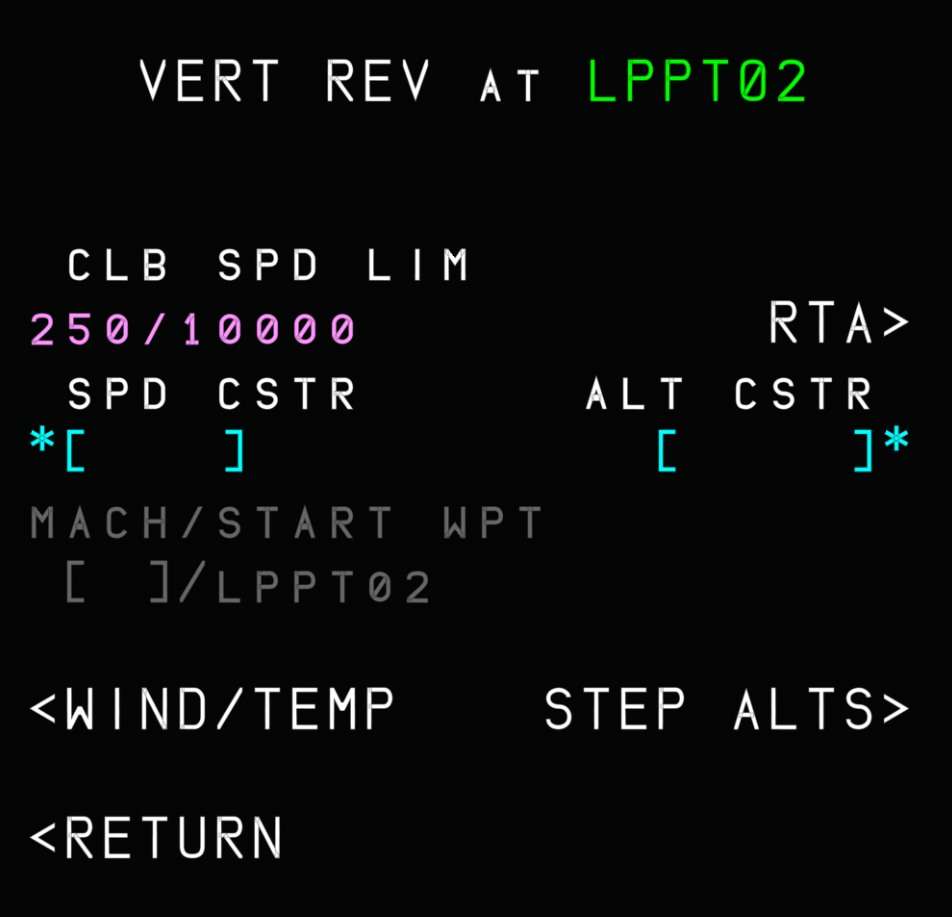 To enter an ETT, we must first perform a vertical revision on any waypoint of choice by pressing one of the right-side LSKs on the MCDU.
