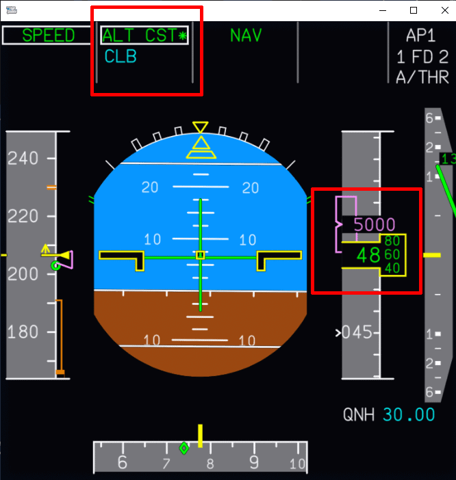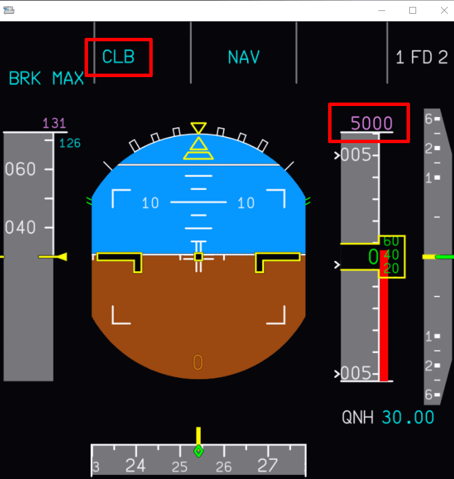 3. The altitude indicator will show the targeted altitude of 5000 ft in magenta.