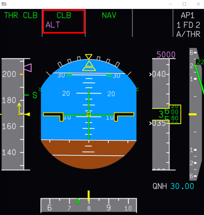 2. CLB will be armed in blue indicating further climb is expected as set in your FCU.