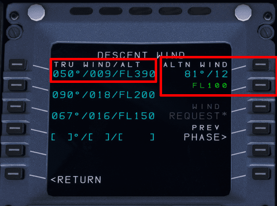 In order to improve accuracy and have a valid Top of Descent, entering the winds is an important aspect of flight planning and setting up the MCDU. You can find the WIND/TEMPS easily on the INIT A page.