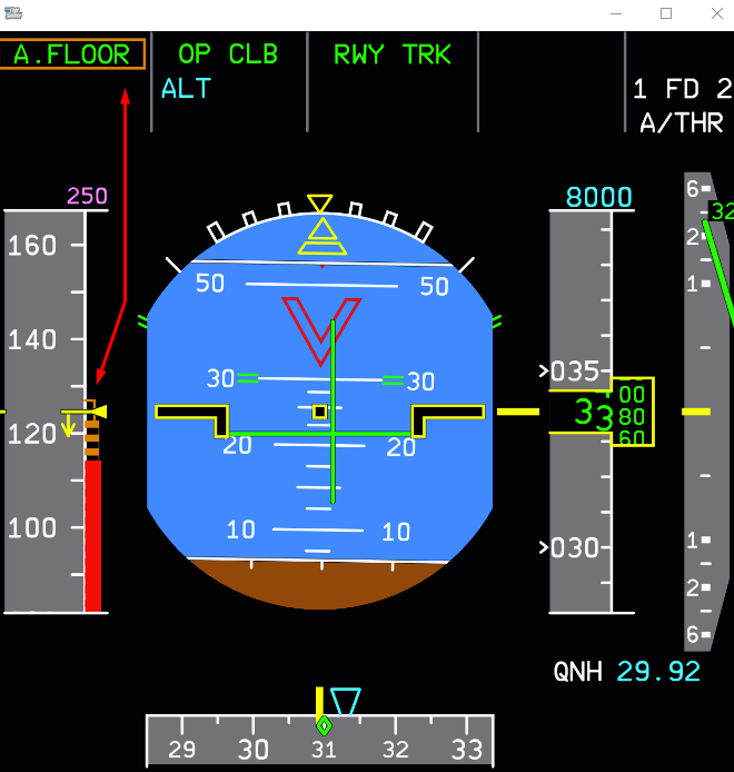 Note: In most situations, the A.FLOOR condition will be followed by a TOGA LK FMA indication on the PFD.