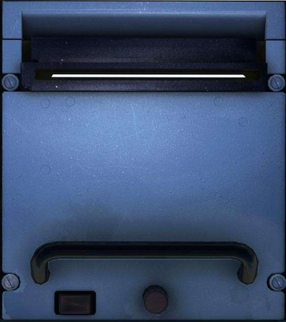 New paper can be added by opening the printer panel using the latch, which locks the door.