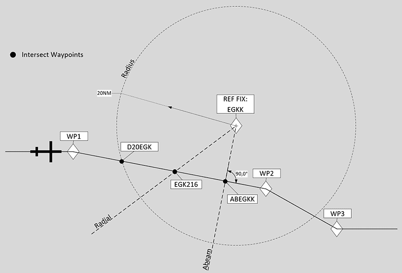 • Used to create intercept waypoints with the radius circle around the REF FIX.