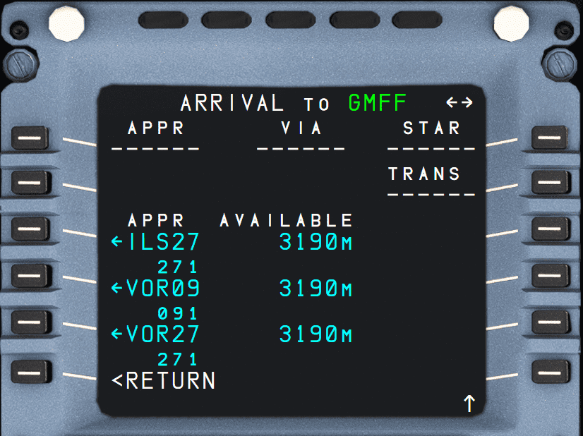 • Used for selecting the arrival runway and procedures (STAR, APPR, TRANS, etc.)